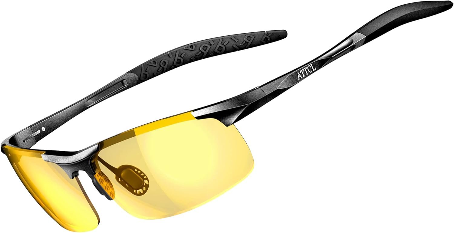 - lunettes conduite de nuit: Les lunettes de conduite de nuit ATTCL sont conçues pour les hommes afin de voyager en toute sécurité la nuit. Parfaites pour le sport ou par temps nuageux, ces lunettes de conduite de nuit rendent la conduite plus sûre. Les lentilles jaunes filtrent 20% de l’éblouissement, réduisant ainsi les accidents de 86%.