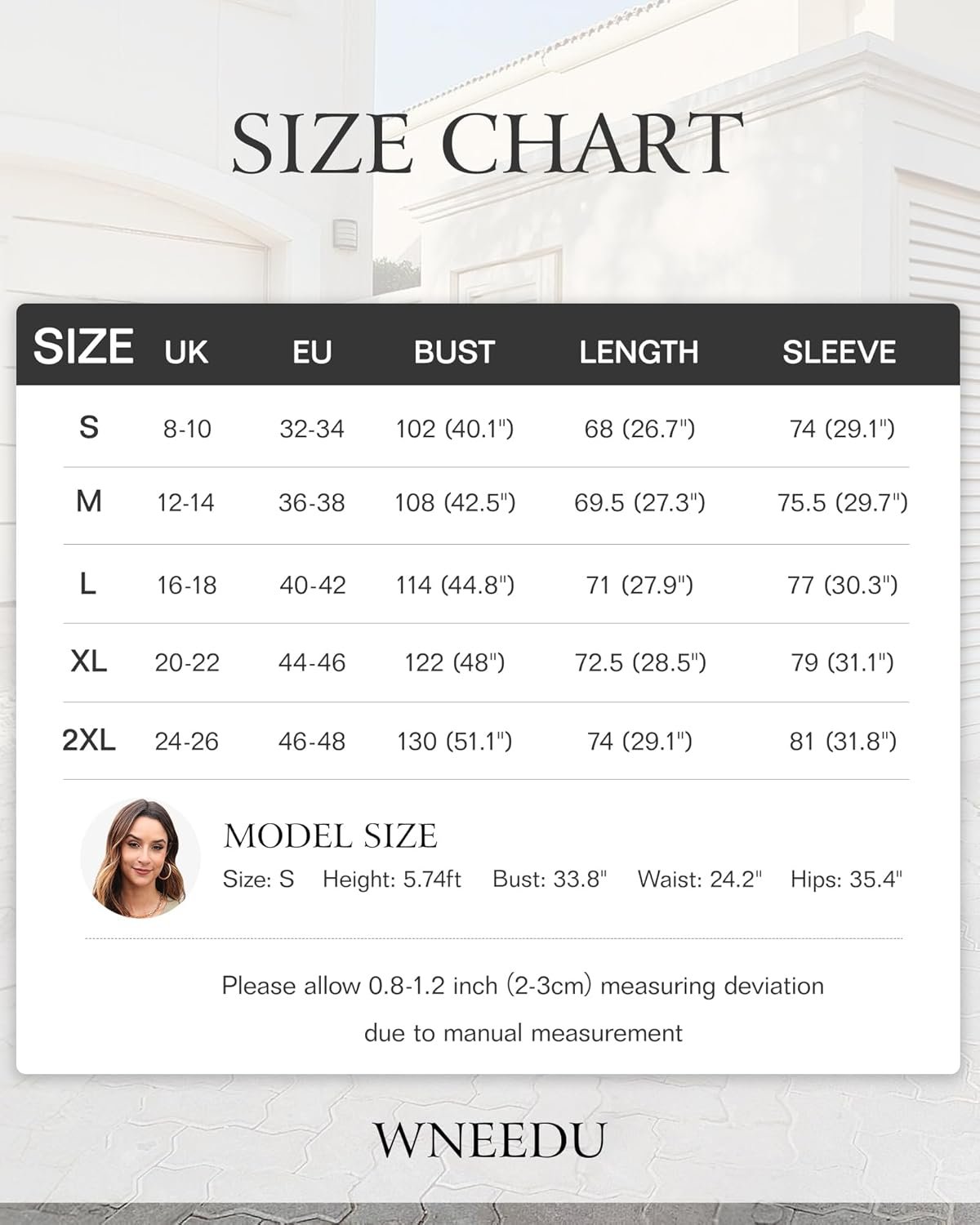 - Conseil: Veuillez vous référer à notre tableau des tailles de cardigan tricoté pour femmes pour choisir la bonne taille. Ne pas blanchir, laver à la main ou à la machine, température de l’eau inférieure à 25°