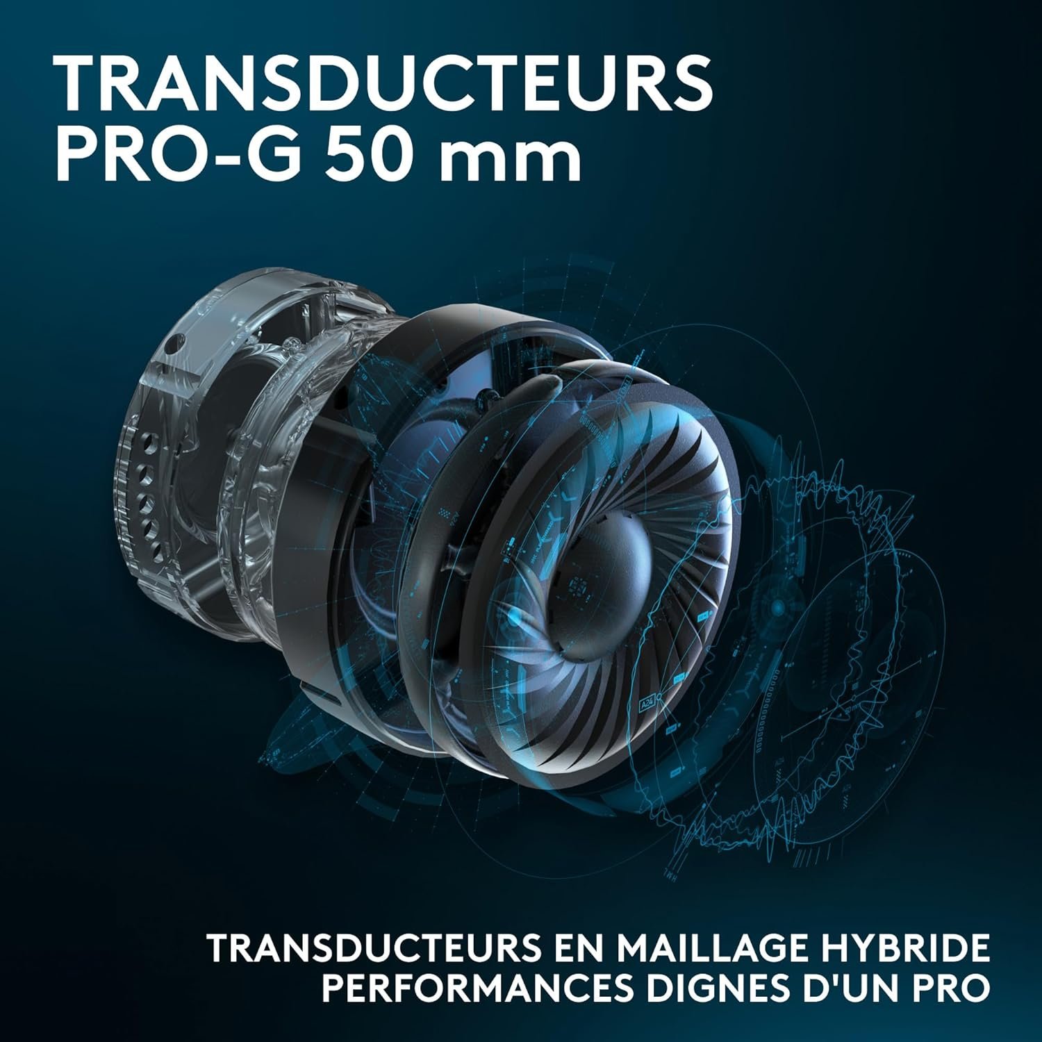 Un son clair: Les haut-parleurs PRO-G de 50 mm offrent une image sonore claire et précise avec une réponse améliorée dans les basses ; écoutez les bruits de pas et les signaux environnementaux avec clarté pour vous donner un avantage compétitif dans les jeux.
