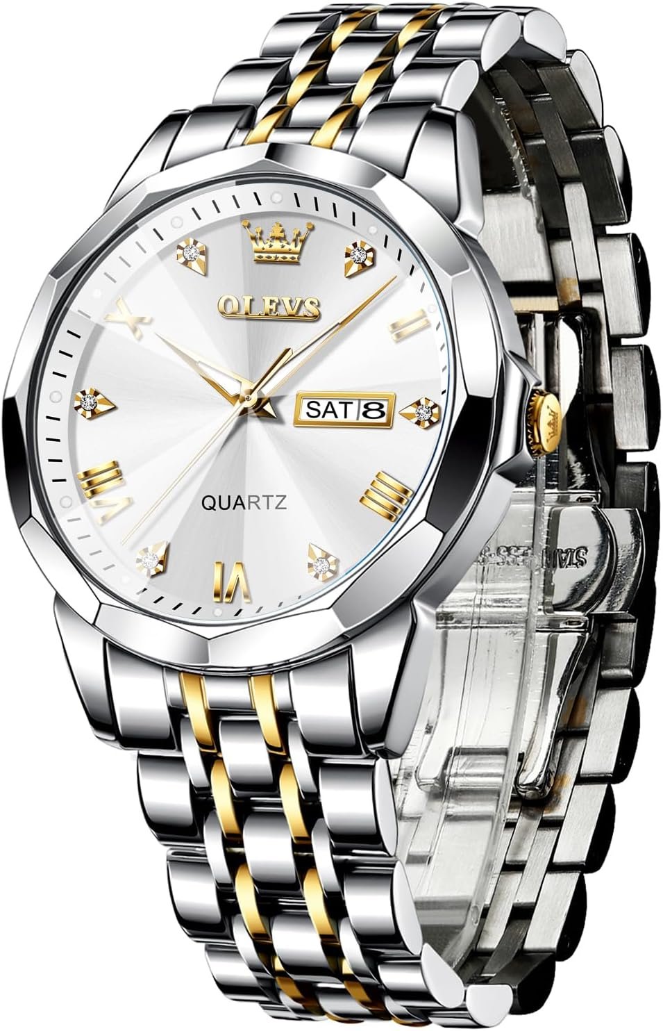 OLEVS montres pour hommes Diamond Business Wear analogique quartz acier inoxydable étanche lumineux date bicolore luxe Casual Watch