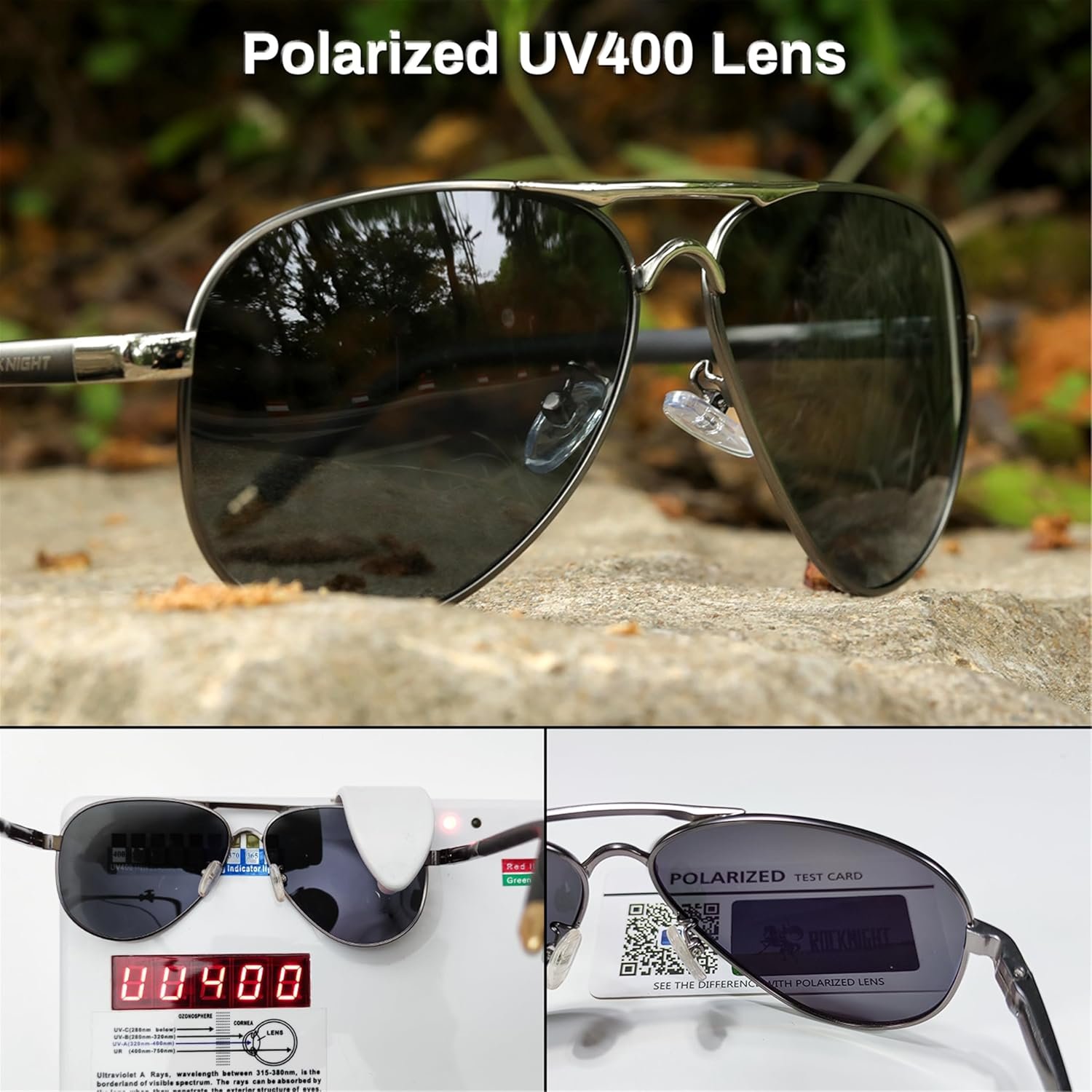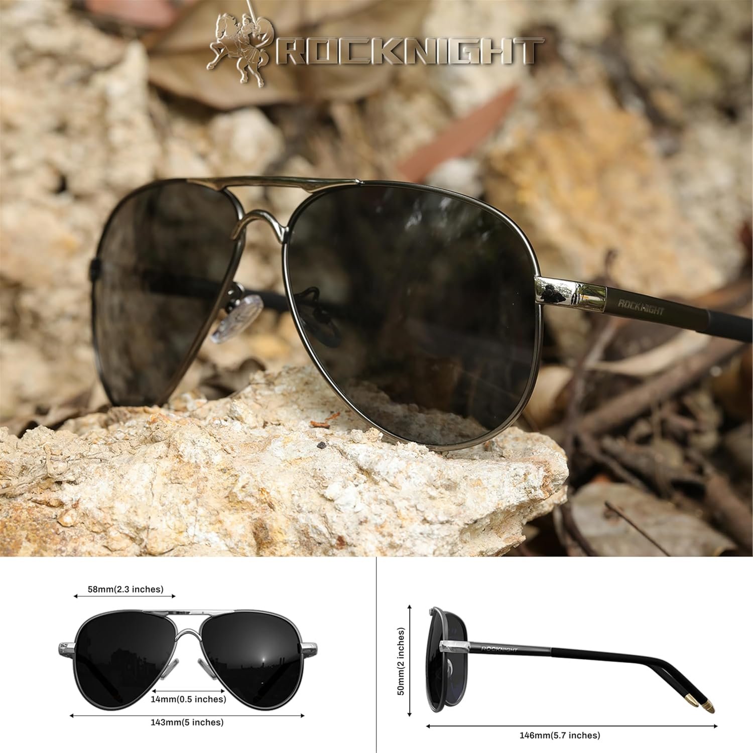 ROCKNIGHT Polarisierte Pilotenbrille für Herren Damen Metall Flat Top Sonnenbrille leicht Fahren UV400 Outdoor 58mmFlat Top (Black Frame/Yellow Lens)