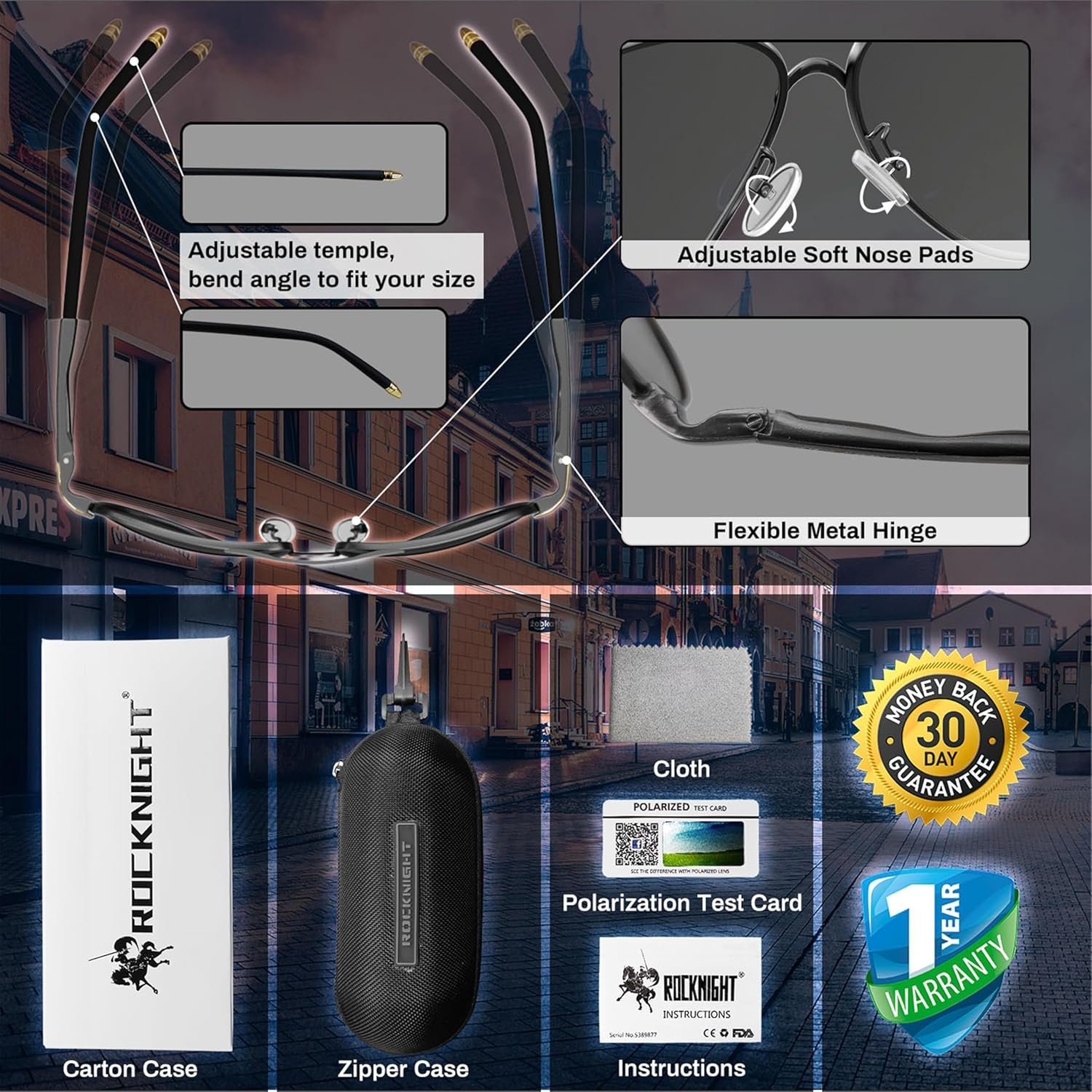 • 【Options de garantie et de cadeau】 : tous les clients de ROCKNIGHT bénéficient d’une garantie de remboursement de 30 jours et d’une garantie de casse d’un an sur le cadre et l’objectif. Ces lunettes de soleil peuvent être utilisées comme cadeaux pour les hommes et les femmes.