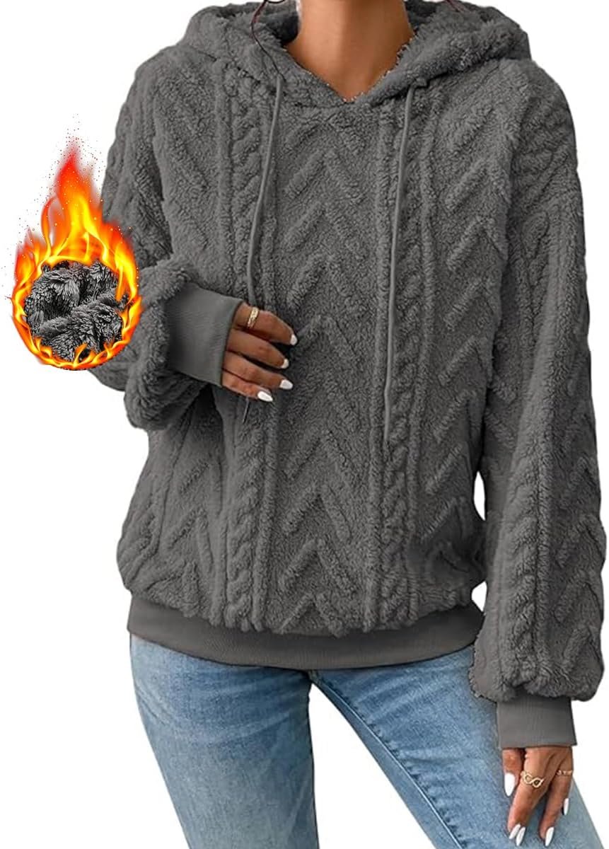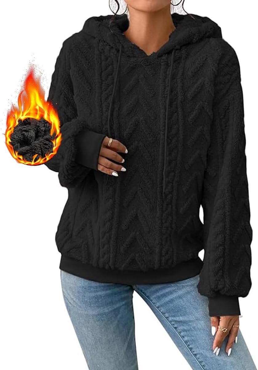 • DESIGN : Hoodie sweatshirts femme ample, tissu pelucheux, capuche à cordon de serrage, manches longues, jacquard, poignets et ourlets élastiques, classique et polyvalent, c’est un article indispensable en automne et en hiver.