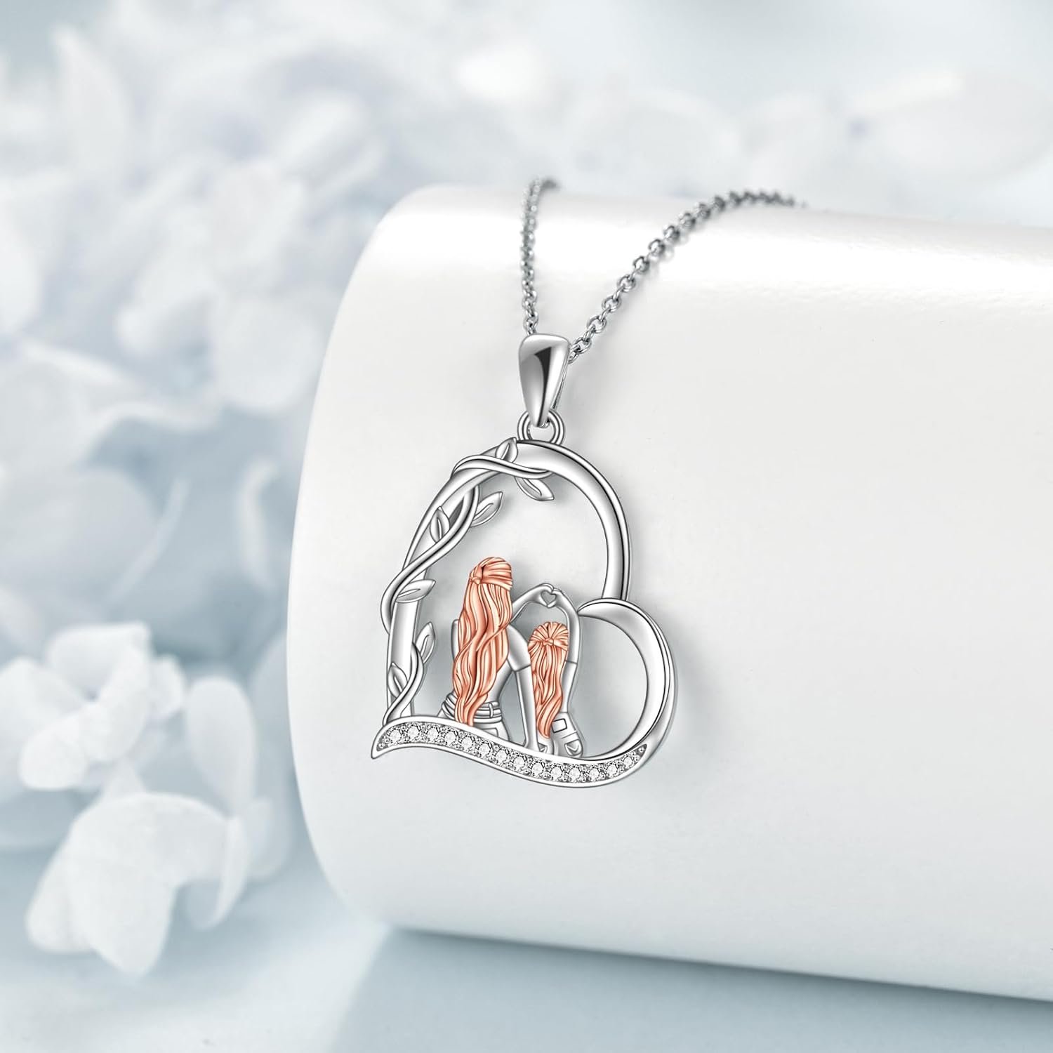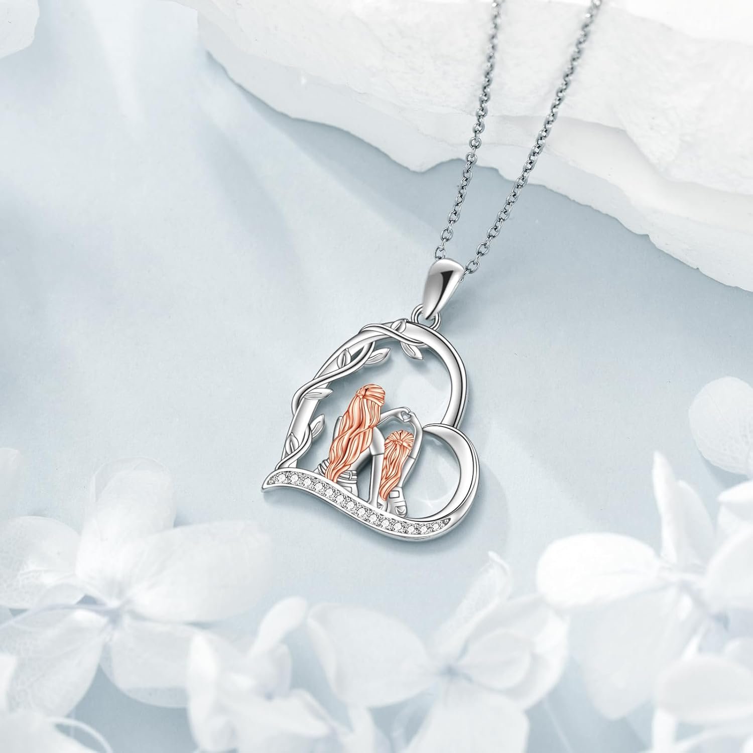 - Colliers pour mère et fille – La mère et la fille s’embrassent et partagent entre elles, et le cœur est gravé avec « I love you, mum », ce qui exprime l’amour éternel d’une mère pour sa fille.